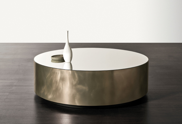 The formal key of this family of low tables is the geometrical perfection: they are available in different sizes for each form. The perimetral side panels are available in handcrafted finishes of metal, with tops in various finishes, from glass to mirrors, lacquer and marble. Very vibrant the Mirror and Metal versions, completely covered with reflecting surfaces or metal.