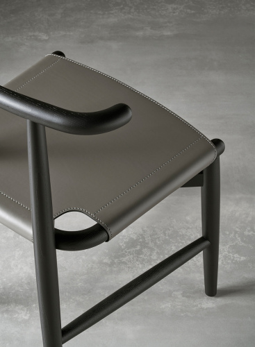 A well-defined and visually light appeal characterize the Emilia chair; this collection stands out for its small sized and well-balanced proportions and its essential solid wood structure, whose warmth perfectly combines with the soft, rounded shapes. More contemporary in the wooden version, it becomes more elegant and refined in the glossy or matt lacquered versions expressing the brand’s eclecticism. For the Emilia chair two different kinds of seats are available: an upholstered version with textile or leather cover; a second version in saddle-leather for a more decided, rigorous look.